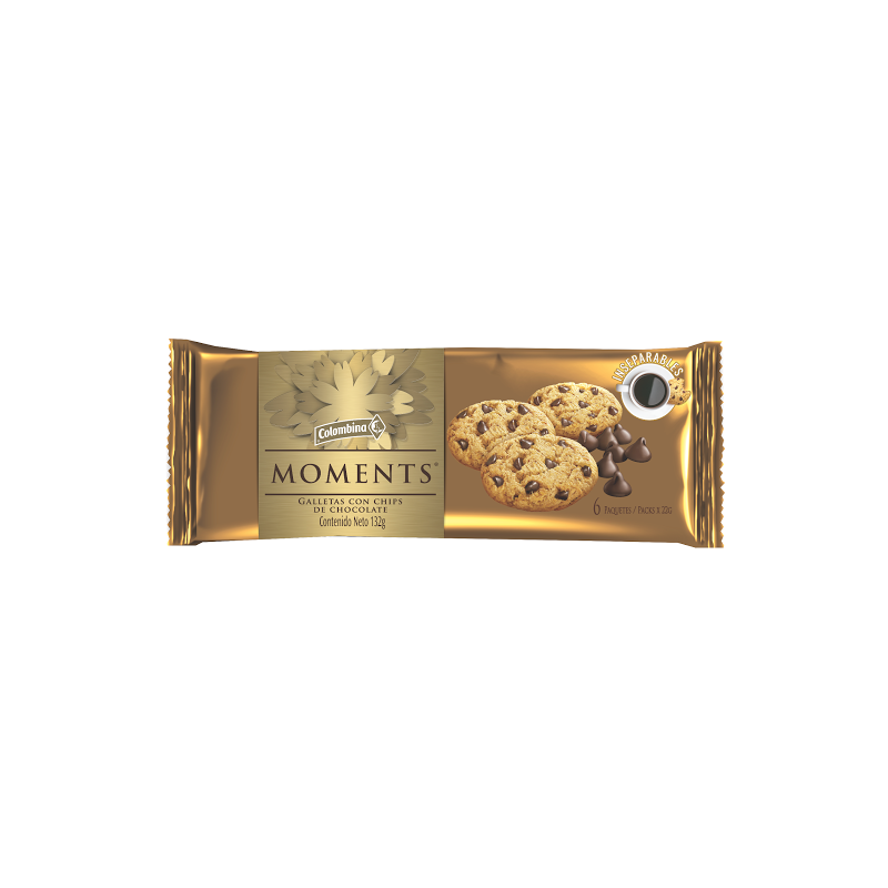 Galleta Moments Chips Chocolate Bolsa 6 Unidades 132 Gr